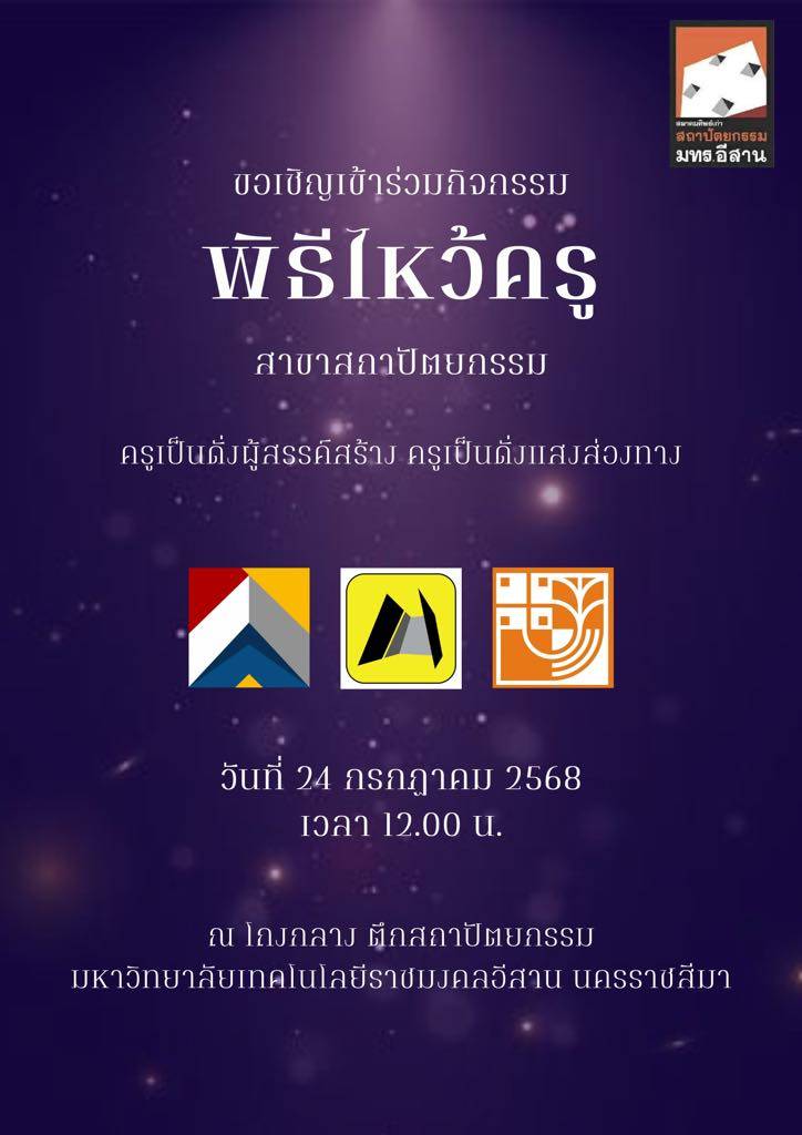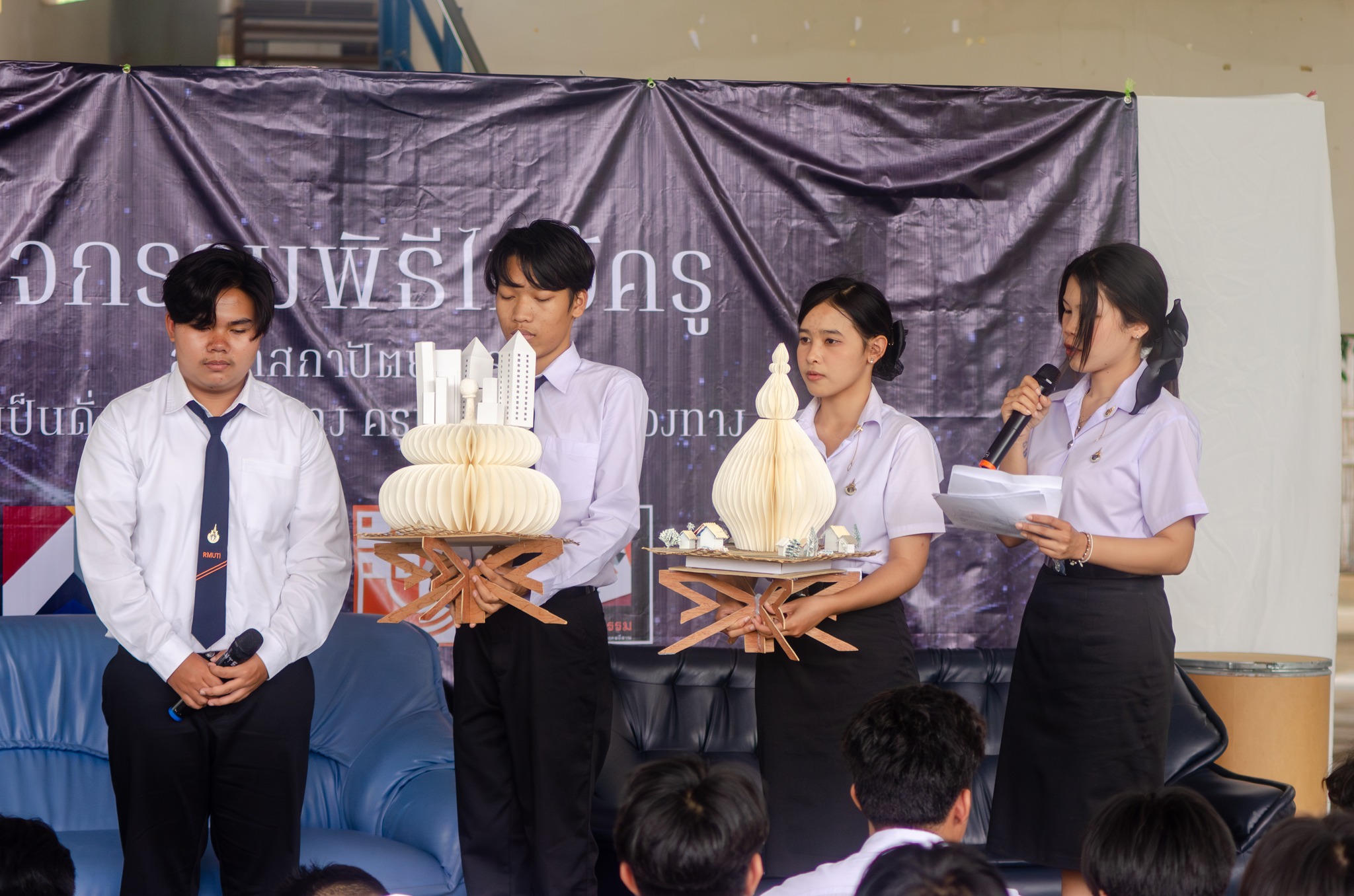 นักศึกษาสาขาวิชาสถาปัตยกรรมทั้งสามหลักสูตรจัดกิจกรรมไหว้ครูประจำปีการศึกษา 2568 ณ อาคารสถาปัตยกรรม (อาคาร 22) ในวันที่ 24 กรกฎาคม 2568