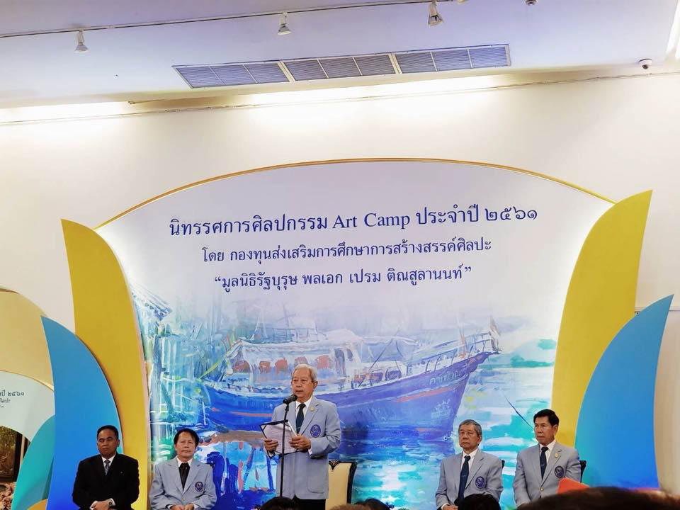 ด้วย คณะกรรมการดำเนินการ กองทุนส่งเสริมการศึกษาการสร้างสรรค์ศิลปะ “มูลนิธิรัฐบุรุษ พลเอก เปรม ติณสูลานนท์” ได้กำหนดจัดงาน “นิทรรศการศิลปกรรม Art Camp ประจำปี ๒๕๖๑” ขึ้น เพื่อจัดแสดงและจำหน่ายผลงานศิลปกรรมที่ได้รับการบริจาคโดย ศิลปินแห่งชาติ คณาจารย์ ศิลปินอิสระ นิสิต นักศึกษา ผู้เคยได้รับทุนจากกองทุนฯ สำหรับพิธีเปิดนิทรรศการศิลปะกรรม Art Camp กำหนดในวันอังคารที่ ๔ กันยายน ๒๕๖๑ เวลา ๑๘.๐๐ น. ณ ห้องนิทรรศการ ๑ พิพิธภัณฑสถานแห่งชาติ หอศิลป ถนนเจ้าฟ้า