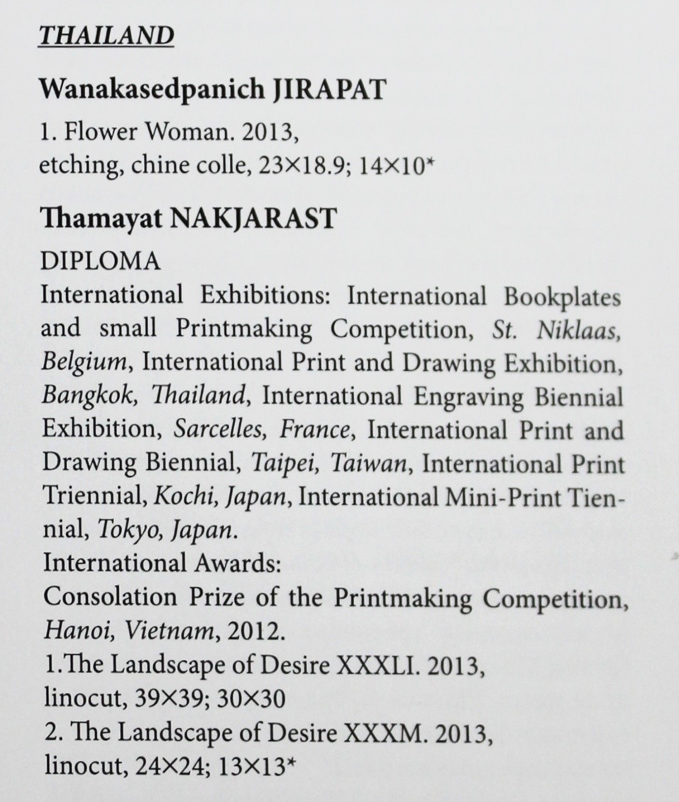 ผลงานภาพพิมพ์ของ นางสาวจิรภัทร วนเกษตรพานิชน์ นักศึกษาสาขาทัศนศิลป์ คณะศิลปกรรมและออกแบบอุตสาหกรรม ได้รับคัดเลือกเข้าร่วมแสดงในนิทรรศการภาพพิมพ์นานาชาติ “Ural Print Triennial 2013” Bashkortostan State Nesterov Art Museum, Russia